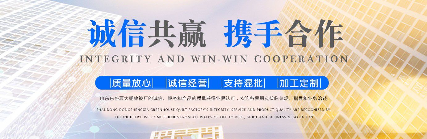 山東東盛夏大棚棉被廠是專門從事大棚棉被,大棚保溫棉被,蔬菜大棚棉被,溫室大棚棉被,防水大棚棉被,大棚棉被廠家等產品生產的企業。公司擁有專業的設計、生產和銷售團隊,并運用先進的科學技術和現代化管理手段為廣大客戶提供優質的產品和服務。  公司致力于提高溫室產品質量和農業保溫材料裝備水平,努力推進溫室產品技術進步和實現現代高效農業。  公司竭誠為廣大用戶提供優質的產品和貼心的服務,您的需求就是我們的目標。  立足現在、展望未來在當今全球經濟一體化進程中充滿了機遇和挑戰。公司將不斷開拓、創新、完善自己。 “誠信、求實、開拓、創新”是我公司的企業精神。  為了能通過科技的力量為客戶生產一個品質靠得住的大棚保溫被,我們以“聆聽客戶心聲、追求卓越品質”作為我們企業的質量方針;以“每天前進一步,真誠服務”作為我們企業的服務宗旨;以“打造優秀團隊,鑄就一流品質”作為我們企業的經營理念。我們通過堅守質量、服務與理念,成就讓視界更精彩的事業。  在前沿目標上,我們堅持做到目光長遠、思想創新、行動堅定,建立企業精神文化,讓全體員工擁有共同的信仰和目標,并且為之奮斗拼搏。同時,我們內心坦誠,言出必行,信守承諾,因為誠信是我們最重要的無形資產。...